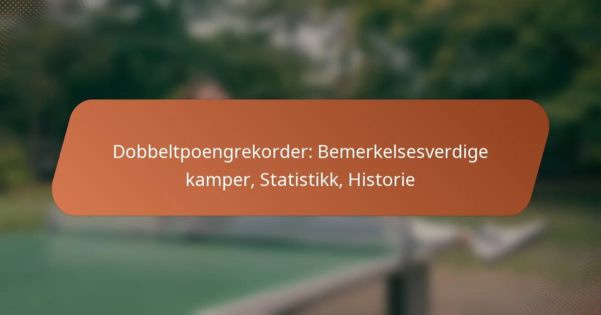 Dobbel scoringsrekorder defineres av ulike nøkkelmetrikker som reflekterer lagets ytelse og individuelle bidrag. Disse statistikkene gir innsikt i seiers- og tapstall, spillerangeringer og historiske trender i dobbelkonkurranser.